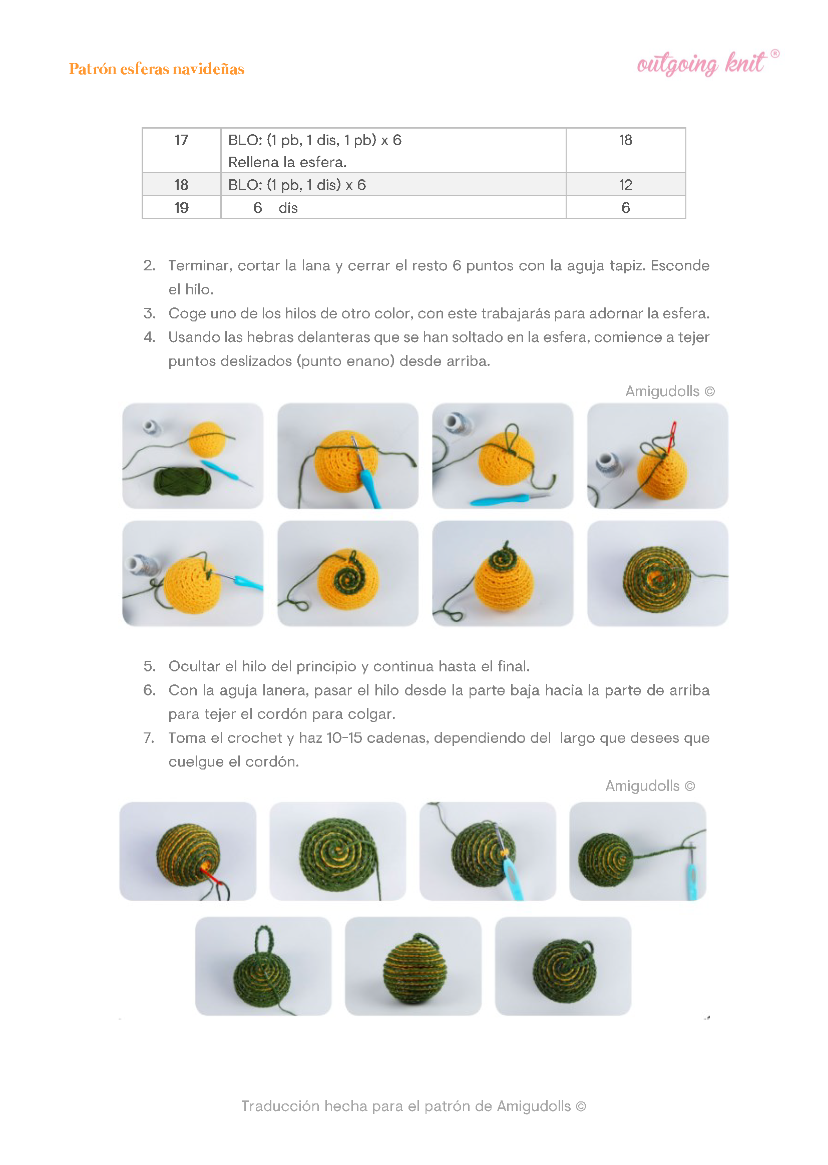 Patrón: Esferas navideñas Aprende a crear tu propia esfera navideña paso a paso. ¡Perfecta para decorar tu árbol! Ver video tutorialDescargar el PDF